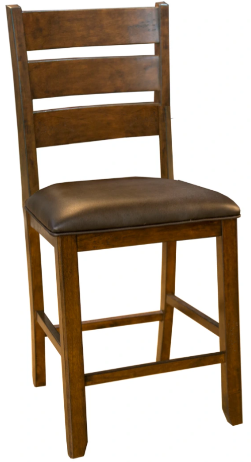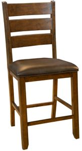 Solid mango wood bar stool chair in Macciato finish, with upholstered seat (faux leather) and ladderback support. Lightweight yet sturdy, it blends modern-rustic warmth and functional comfort—perfect for diverse dining environments.Read More