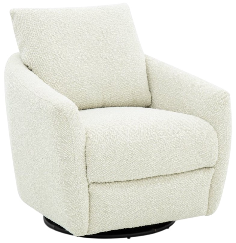 Small scale, low profile 360-degree swivel chair with semi-attached pillow back, box style pad over chaise seat with pocket coil springs, metal seat box, and power ottoman. Inside the arm push button power controls.Read More