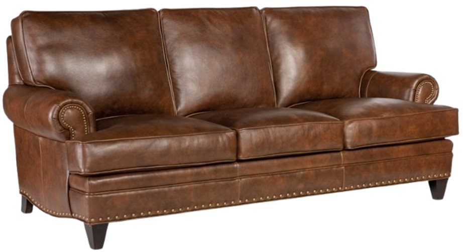 The Carrado Stationary Sofa 8-Way Tie is offered in hundreds of leather options and includes a standard nailhead trim #9 and #54 in natural finish. Other decorative nailhead finishes are available. Comes with a standard mahogany finish but other finishes are available. It features a loose back and a premier down seat.Read More