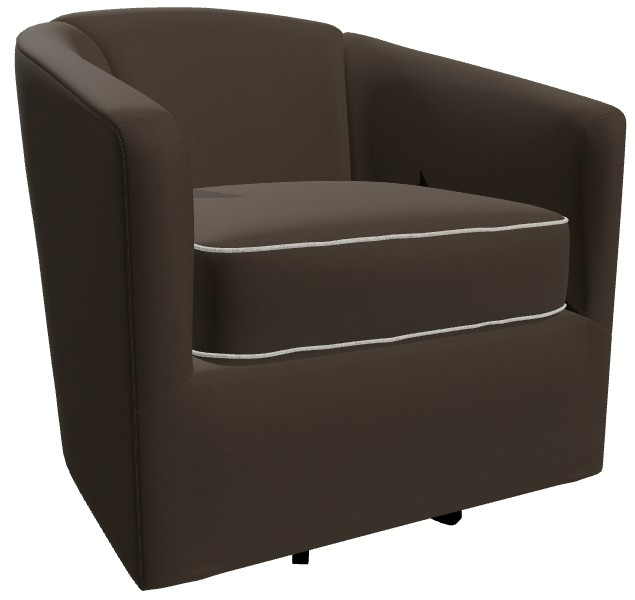 Sleek and comfortable, this swivel glider will add a touch of modern to your living space. It features a rounded barrel silhouette, button accents, and our blend down cloud cushion.Read More