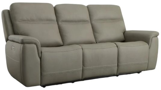 Transform your living space with the Sawyer power reclining sofa with power headrests and lumbar, a perfect blend of comfort and style. This stunning design features high-quality, gray top grain leather upholstery with unique cross-stitching and a distinct arm silhouette, adding a sophisticated touch to any room.Read More