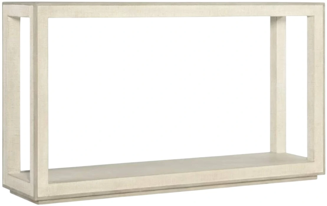 Spark your inner Zen and create a tranquil retreat with the help of the Cascade console table, offered in a light and airy neutral color palette combining the pebble beach and terrain finishes. Crafted of tactile lacquered burlap with an oak veneer wood top and trim.Read More