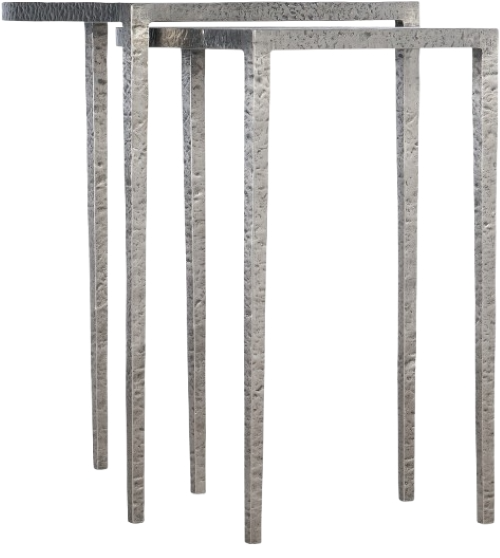With a hand-forged authenticity, these slender, light, and airy Chapman Nesting Tables are crafted of hand-hammered metal with a pewter finish. The smaller table fits beneath the larger one. Hooker Furniture has launched the Chapman collection, a smaller-scaled, casual-contemporary whole home group.Read More