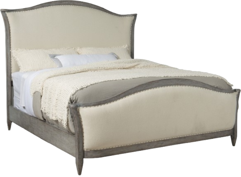 The sweeping, shaped headboard and footboard of the stunning Ciao Bella Queen upholstered bed will present a romantic centerpiece of your master suite or guest bedroom. The creamy Tuscan white upholstered headboard and footboard are framed in poplar solids finished in a hand-chiseled speckled gray and trimmed with intricate tack nailheads.Read More