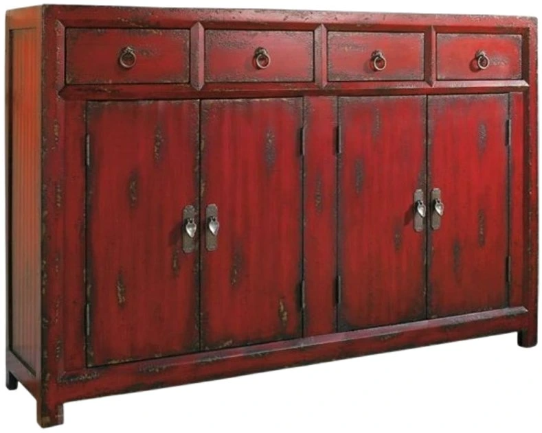 A stunning focal point piece, this rich red hand painted cabinet with an Asian flair adds both a dash of color and style and hard-working storage to your home. Crafted of wood veneers, the cabinet has four drawers and four doors with one adjustable shelf behind each.Read More