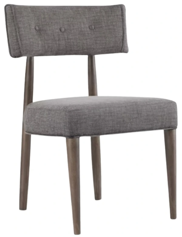 In an authentic mid-century modern silhouette, the versatile Curata upholstered chair exudes a curated chic appeal with a fabric seat and button-tufted back covered in Edward graphite, with the wood frame finished in a medium greige color called mountain modern.Read More