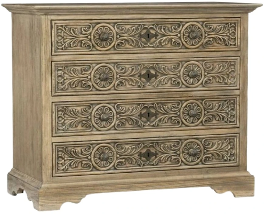A stunning accent for any space in your home, the Floresville bachelors chest is crafted in a carved gambel oak motif inspired by the scrub oaks prominent in the American west. The sandstone finish has characteristic aged black highlights reminiscent of the sandstone quarried in Texas Hill country for centuries.Read More