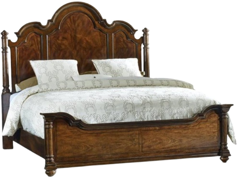 The striking, heirloom-quality Leesburg queen-sized poster bed is elegantly shaped and displays exquisite swirl and cathedral mahogany veneers on the generously-scaled headboard. Crafted of mahogany veneers, the bed features a rich traditional mahogany finish with exquisite cathedral and swirl mahogany veneers with light physical distressing.Read More