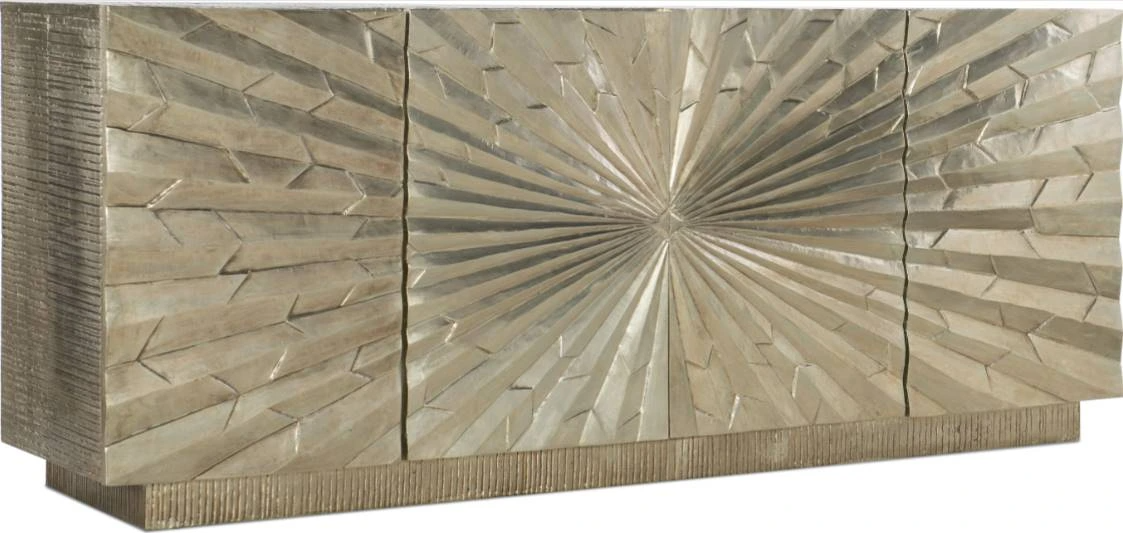 Grand scale combines with a silvery jewelry-like finish on a textured surface to create a striking focal point with the Big Bang 78-inch entertainment console. This iconic piece is crafted of mango solids with German silver foil and features 4 doors.Read More