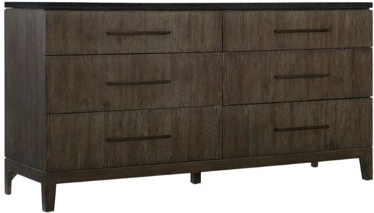 With a simple, pure and linear form and globally-sourced mixed materials, the Miramar Raphael stone-top dresser is a striking organic silhouette with function for your bedroom storage needs. With 6 drawers, the dresser has a removable jewelry tray in the top right drawer, cedar-lined bottom drawers and bottom-mounted self-closing drawer guides.Read More