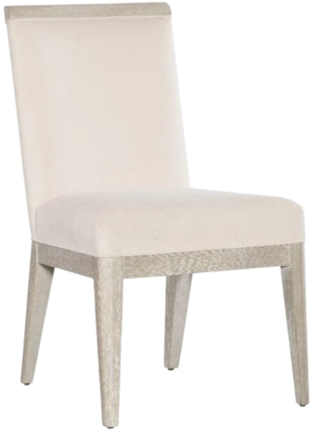 The versatile chair is upholstered in the Cottony Cotton cover. Unbound by geographical design, Modern Mood presents itself as an evolution of design choices, spanning a variety of decades and design movements, while maintaining an unmistakably modern aesthetic that transcends time. The 90-piece collection includes bedroom, dining room, home office, accent and occasional items characterized by substantive forms with soft architectural details. Elevated materials and brushed metal accents in a warm pewter finish are evident throughout the collection, including metal banding and edging as well as marble and glass accents. Crafted with flat cut quartered oak veneer with wire-brushed detailing, Modern Mood is presented in two finishes: Mink and Diamond. Delivering a dark, earthy brown with notes of black, Mink delivers a timeless aesthetic. A much lighter presentation is achieved with the crystal-like alabaster and pewter hues of the Diamond finish, delivering a soft sophistication.