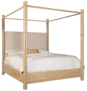 Create a personal oasis inspired by tropical getaways with the Retreat pole rattan upholstered bed with canopy. The dramatic bundled pole-designed motif with rope accents creates a laid-back luxury, complemented by the side rails crafted of oak veneers and finished in the sand-colored dune finish.Read More