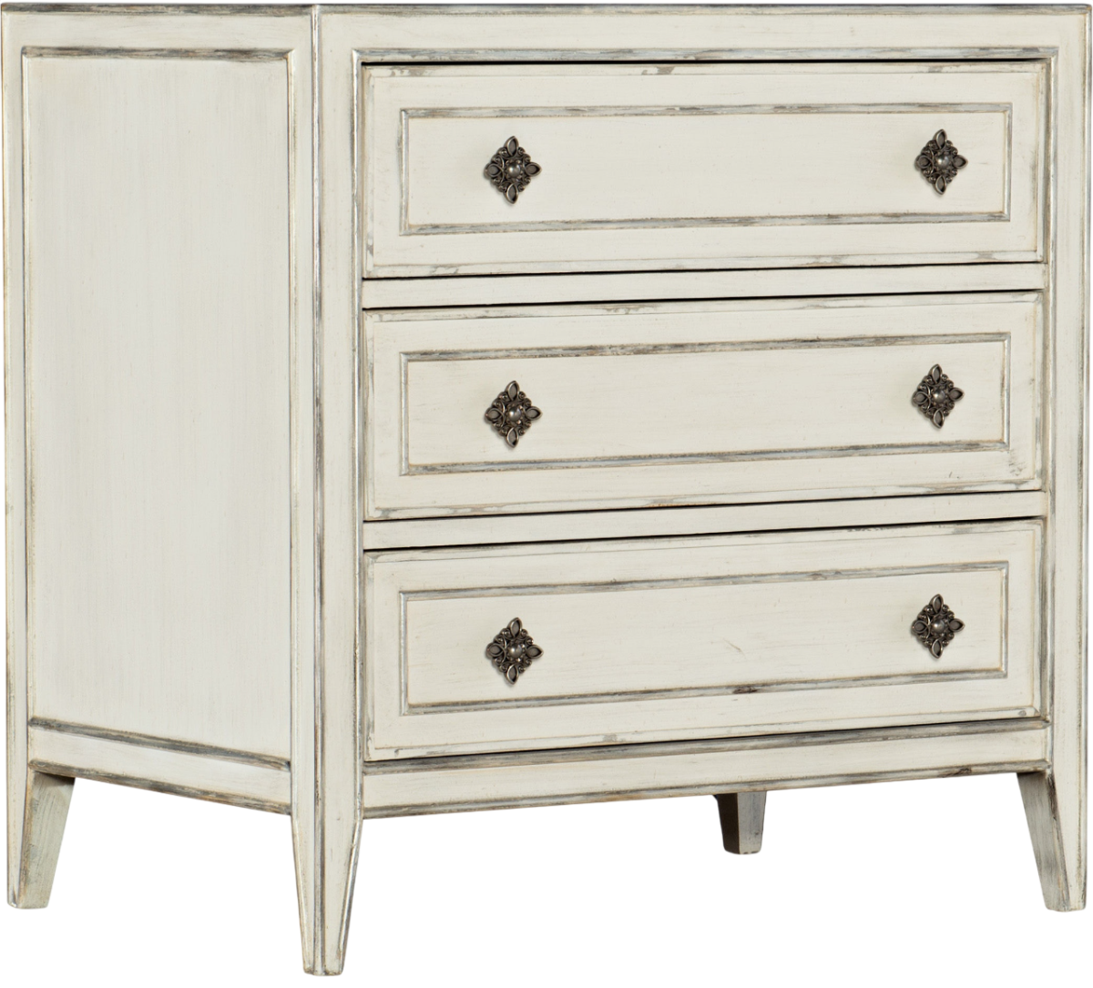 Hooker Furniture offers full-height, full-depth depth and full-width drawers for maximum storage capacity. All drawers have strong, time-tested English or French dovetail construction for years of problem-free use. Plywood drawer bottoms are attached to plywood drawer sides for strength and durability. Metal side guides or wood-on-wood guide systems operate smoothly