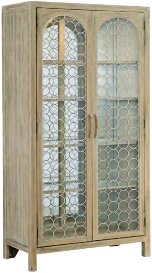 Create a calming resort-inspired retreat in your home with the focal-point-worthy Surfrider display cabinet. The circular patterned metal fretwork over tempered glass on the door fronts is a designer detail with an antique mirror back panel. Behind the doors are 4 adjustable wood-framed glass shelves illuminated by a 3-intensity touch switch.Read More