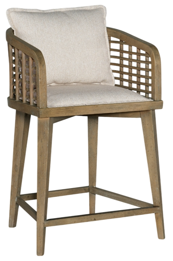 Create a calming resort-inspired retreat in your home with the laid-back, 35-inch high Sundance barrel back counter stool. The appealing lattice design of the cane seat back combines with a loose back pillow and an upholstered seat covered in the zuri cream performance fabric to invite you to linger and relax.Read More