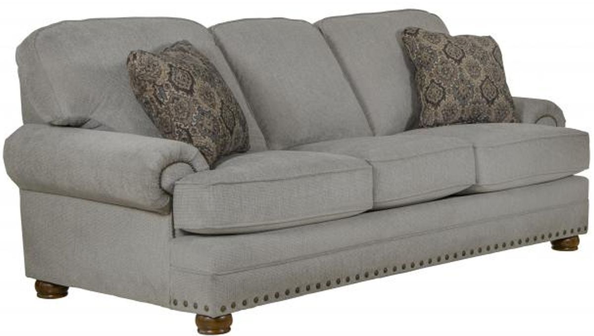 Plush comfort describes the Singletary Sofa from Jackson Furniture. It features padded back and seat cushions, padded rolled arms and wooden bun feet. It has nailhead trim on the arms.Read More