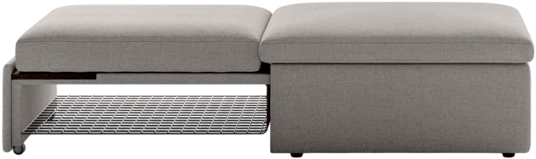 The convertible ottoman sleeper provides versatile solutions for modern living, featuring an integrated coffee table surface and mattress section storage.