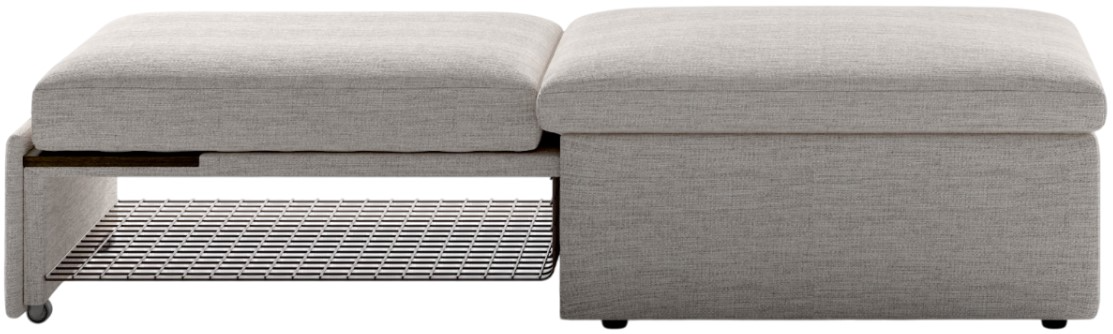 The convertible ottoman sleeper provides versatile solutions for modern living, featuring an integrated coffee table surface and mattress section storage.