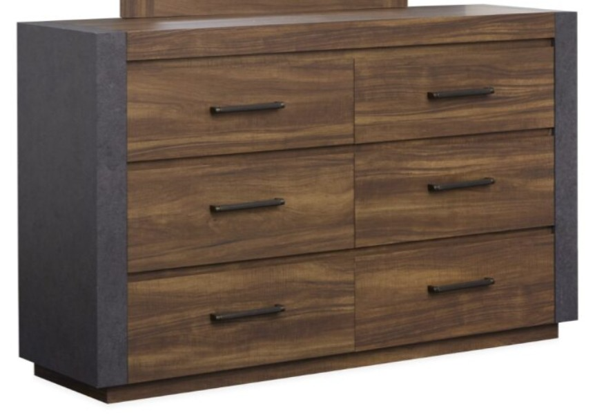 The Jensen collection embodies the raw, edgy appeal of modern industrial style, featuring a tavern brown finish paired with Verona bronze hardware for a rugged, utilitarian look. The case goods showcase the perfect balance of wood and aged metal laminate, creating a striking mixed-media effect with bold, masculine lines.Read More