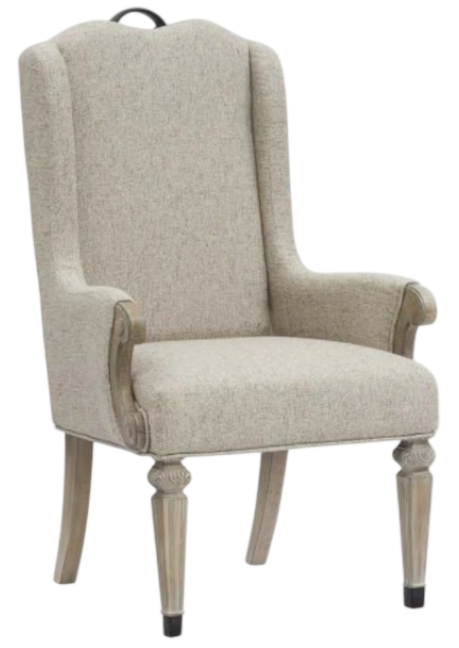 Beautifully-scaled host chairs in a classic upholstered wing style are offered with a leg or skirt option. Rooted in Old World design with an updated and relaxed soft Fawn finish, it’s hard to surpass the appeal of the elegant Marisol dining collection. Elevate your interiors with the refined style of Marisol.Read More