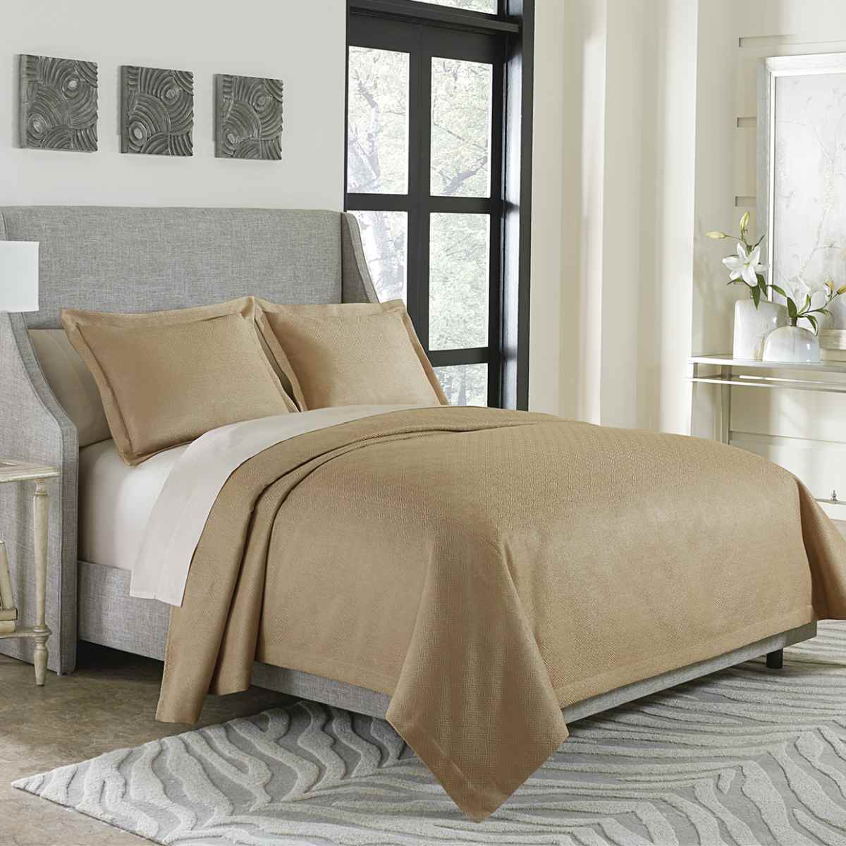 Add texture and style to your bedroom with the contemporary Alton bed cover! The single-layer bed cover is all about subtle beauty with an eye-catching textured geometric pattern and a soft gold hue that blends easily with other color schemes.Read More