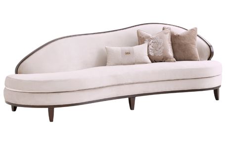 The Camellia Field warm pecan asymmetrical sofa combines dramatic curves with a touch of floral artistry. Wrapped in soft velvet upholstery, the front offers an inviting seat, while the back is adorned with a vibrant camellia pattern, making it a centerpiece from every angle.Read More