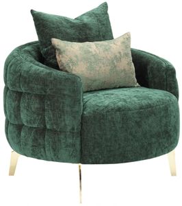 The Michael Amini® Celine Chair is a regal embodiment of glamour and comfort. With its striking emerald upholstery finish and gold accents, it exudes opulence. The chair's detailed craftsmanship and elegant silhouette make it a focal point in any room.Read More