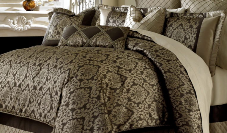 Show off your sophisticated style with Imperial. This set is crafted with a bronze jacquard frame pattern, diamond pin-tuck reversible euro shams, bedskirt, and decorative gimp and brush fringe accents. Featuring a classic antique touch, this bedding design includes decorative pillows with feather inserts, removable covers and hidden zippers.Read More