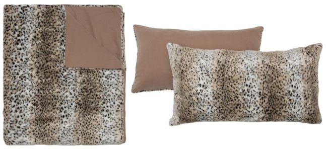 This chic faux fur, snow leopard pattern, duvet set adds modern warmth to any contemporary space.The plush woven fur fabric, complements any modern home style. Kasbah is available as a 3-piece Queen Set and King set.The Queen set includes standard shams, while the King includes King shams.Read More