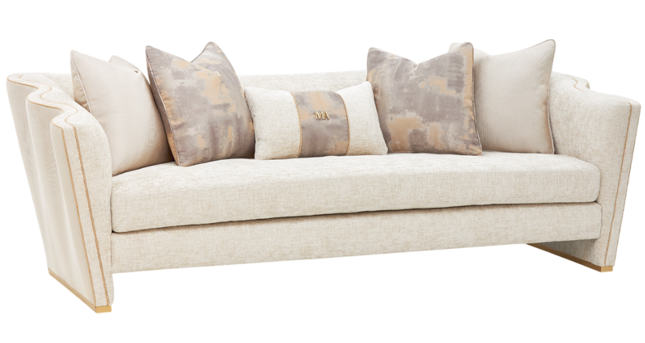 The La Terrazza light champagne sofa in cappuccino features architectural detail that ensures beauty from every angle. Plush woven chenille seating exudes comfort, while the woven jacquard exterior provides visual and tactile contrast. Paired with rich neutral jacquard pillows, this sofa is a statement of modern luxury.Read More
