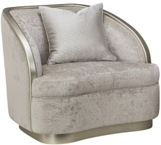 This chair combines modern elegance with luxurious comfort. Upholstered in a sophisticated silver mist fabric with storm-toned accents, this chair offers plush seating and a refined aesthetic. Its sturdy construction and versatile design make it a perfect addition to any living room, bedroom, or office space.Read More