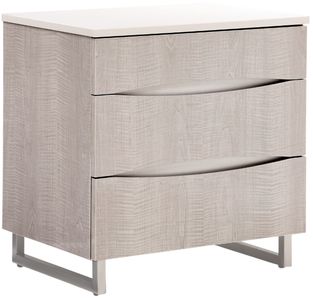 The Marin greige nightstand is simple yet elegant with its cultured marble top and stainless-steel accents. The three velvet lined drawers with self-closing glides are the perfect place for convenient bedside storage.Read More