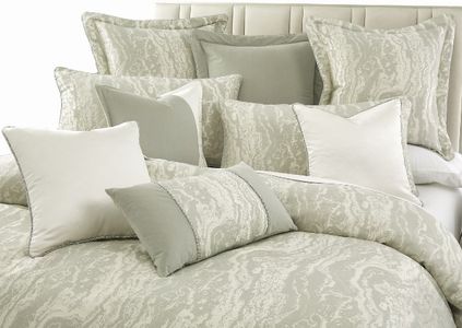 The Marvel Duvet Set is teeming with texture with its understated mist green hue that blends easily with variety color palettes. Matching Euro shams reverse to solid mist green velvet to add versatility, and solid ivory and coordinating accent pillows add a dash of distinction and the perfect 'wow' factor.Read More