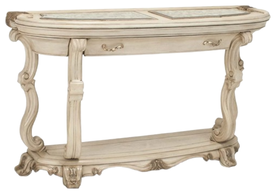 Two-Tier Display with Sculptural Support: Graceful scroll-carved legs and a lower shelf create a grand stage for your most treasured décor.