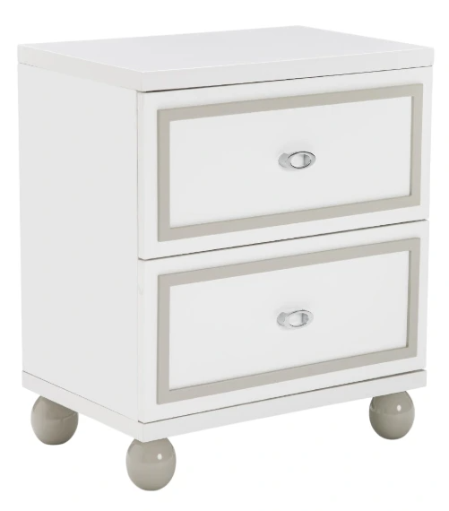The Sky Tower Nightstand brings elegant functionality to your bedside with its clean lines, radiant finish, and practical storage. Finished in a glossy cloud white acrylic, this piece is framed with subtle contrasting gray trim that adds visual structure and softness. Two drawers offer effortless storage for nighttime essentials.Read More