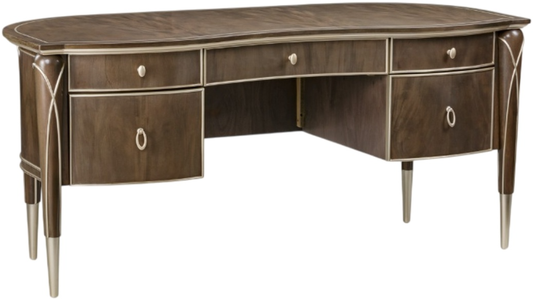 The Villa Cherie desk seamlessly blends function with style. Velvet lined drawers and a spacious tabletop offer practicality while chic Chardonnay accents, delicate hoop pulls, and Swirl Mahogany veneers make this piece stand out in a crowd.Read More