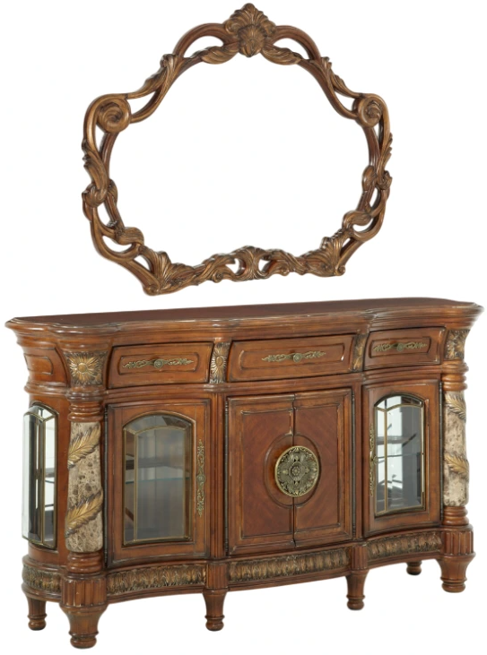 Create the dining experience of a lifetime! The Villa Valencia Sideboard and Mirror set creates a display guaranteed to brighten your dining room and add the convenient storage space you need.Read More