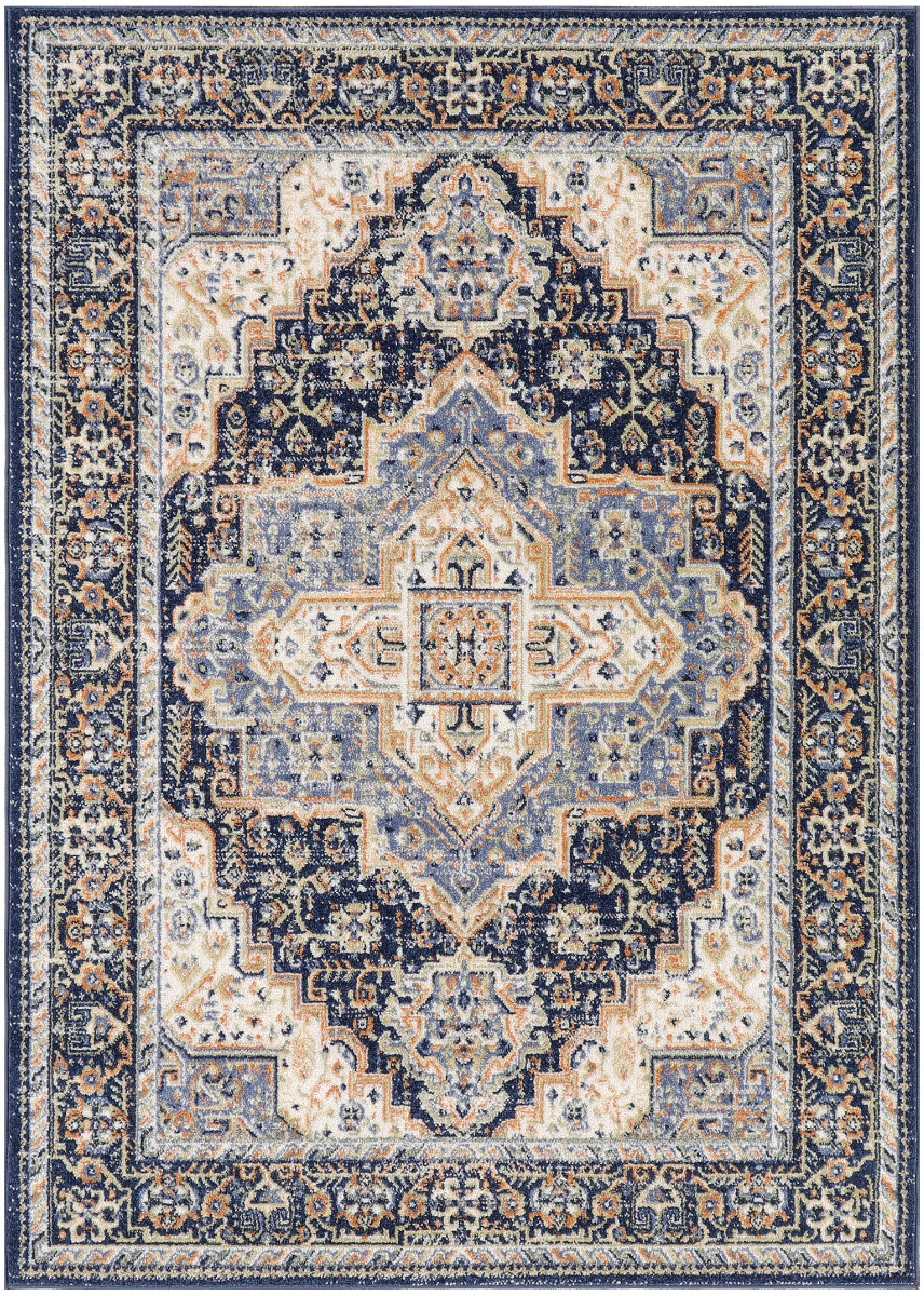 Add timeless style with this navy Nourison Essentials Persian Area Rugs. The classic center medallion pattern is finished with a tasteful fade that brings a warm and comforting vibe to your outdoor conversation areas. This outdoor rug is versatile enough for use inside your home as well.Read More