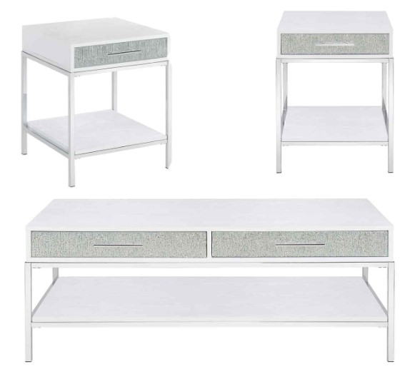 A dazzling collection of tables, Mirage delivers contemporary glam styling in this beautiful 3-piece set. White finishes combine with mirrored drawer fronts and chrome legs in tables that glimmer and sparkle in available light.Read More