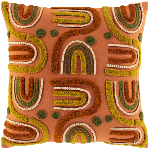 The Declan Terracotta 18" x 18" Toss Pillow from Surya features a down insert, knife-edge design, and is made in India.