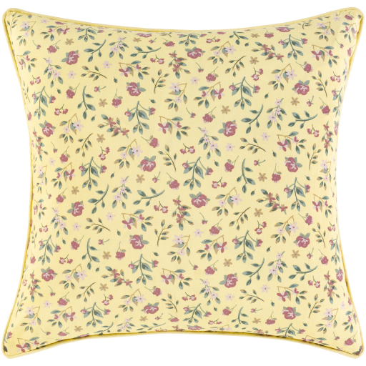 The Floret Butter 20" x 20" Toss Pillow from Surya features a down insert, piping-edge design, and is made in India.