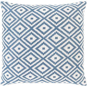 The Kanga Blue 22" x 22" Toss Pillow from Surya features a down insert, knife-edge design, and is made in China.