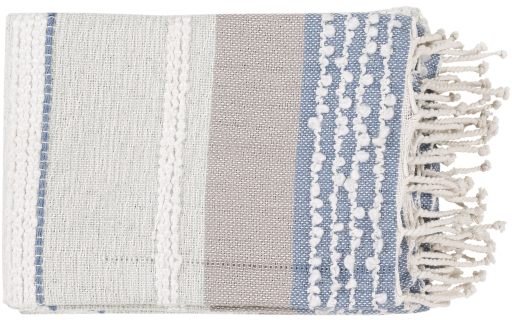 The Manteo Sea Foam 50" x 70" Throw Blanket from Surya is hand woven and made up of 70% cotton and 30% acrylic.Read More