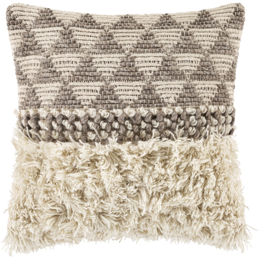 The Merida Taupe 20" x 20" Toss Pillow from Surya features a polyester insert, knife-edge design, and is made in India.