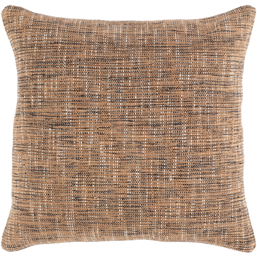The Pluto Camel 20" x 20" Toss Pillow from Surya features a down insert, knife-edge design, and is made in India.