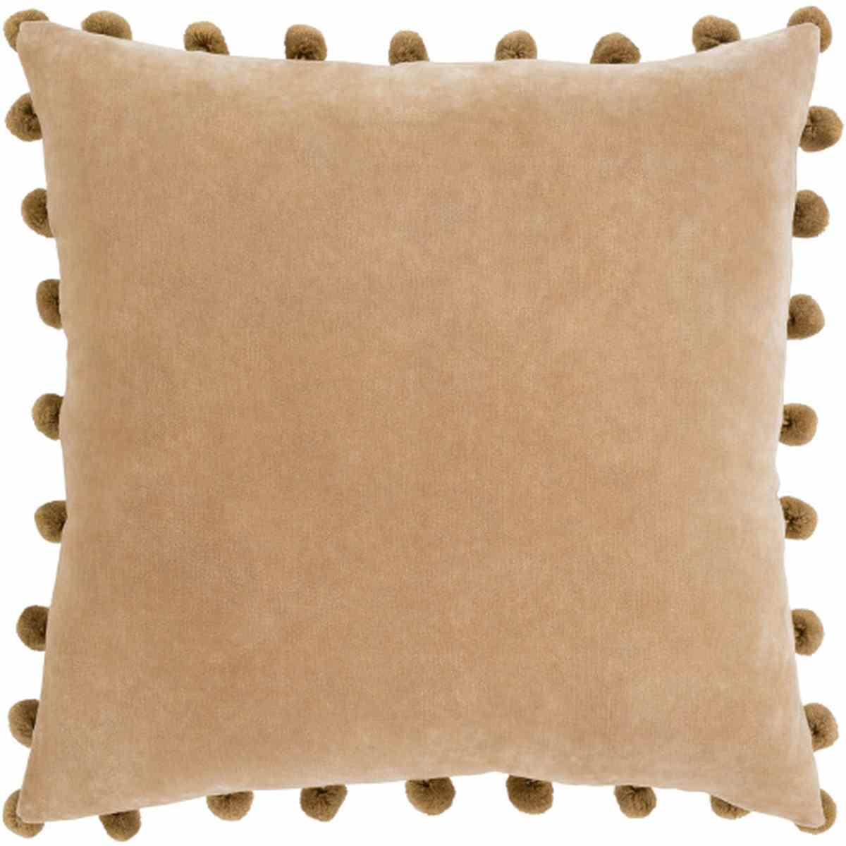 The Serengeti Camel 20" x 20" Toss Pillow from Surya features a pom pom design and is made in IndiaRead More