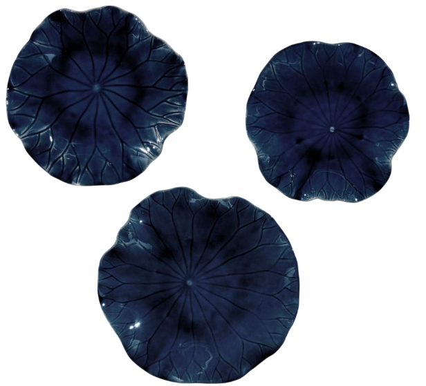 A trio of ceramic flowers with detailed veining, glazed in a rich cobalt blue. May be hung on a wall or used as a tabletop accessory. Make a bold statement by incorporating these stunning wall decors into your home.Read More
