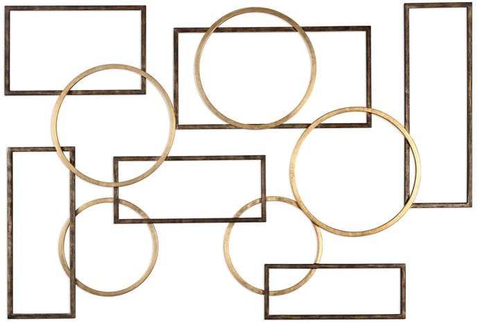 A Fun Combination Of Iron Circles And Rectangles Finished In Rich, Brushed Bronze And Gold Leaf. A Striking Design To Complete Any Setting. May Be Hung Horizontal Or Vertical.