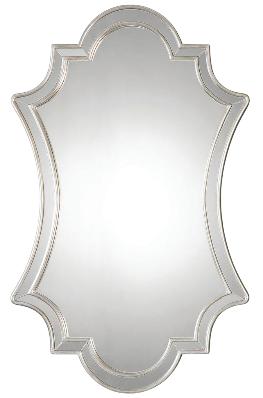 Gracefully Curved Polished Edged Mirror Facets Encased In A Lightly Antiqued Silver Leafed Frame.Read More