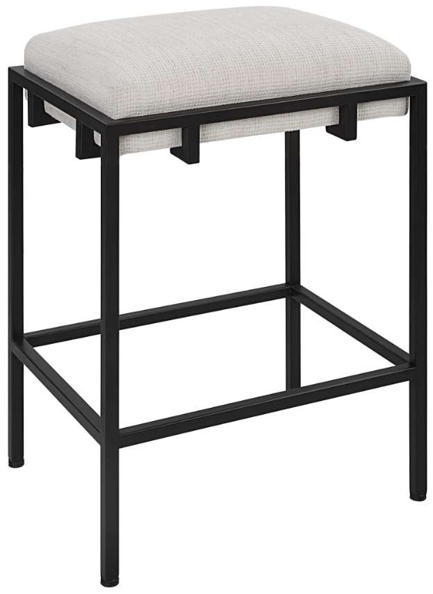 A classic and sophisticated color combination, this counter stool features a sleek matte black iron frame and is paired with a plush upholstered seat in a crisp white waffle textured polyester.Read More